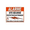 Cet autocollant permet clairement de montrer un message dissuasif indiquant que votre domicile est protégé par un système de surveillance anti-intrusion sans indiquer aucune informations sur le matériel ou entreprise que vous avait solicité.