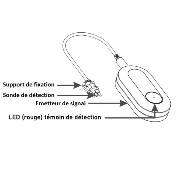 Le détecteur MD-230R sans fil est un accessoire sans fil qui est conçu pour détecter toute fuite de liquide au sol grâce à une sonde déportée.