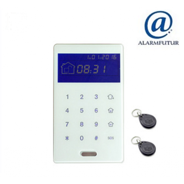 Commandez à distance le système de votre domicile grâce à ce clavier haut de gamme sans fil équipé d'un lecteur badge intégré et livré avec 2 badges porte clés RFID ( avec la possibilité d'ajouter des badges supplémentaires jusqu'à 8 au total ).