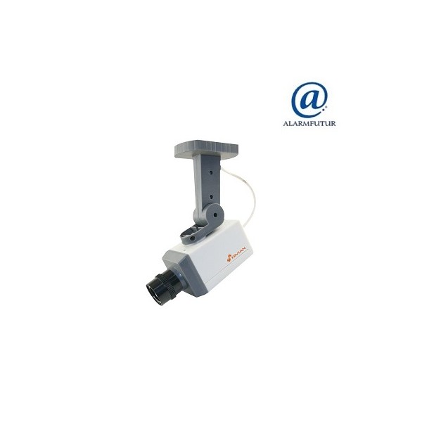 Caméra factice avec détecteur de mouvement qui lors de la détection de présence, une led rouge clignote et la caméra effectue un balayage motorisé de droite à gauche horizontalement environ de 15 secondes.