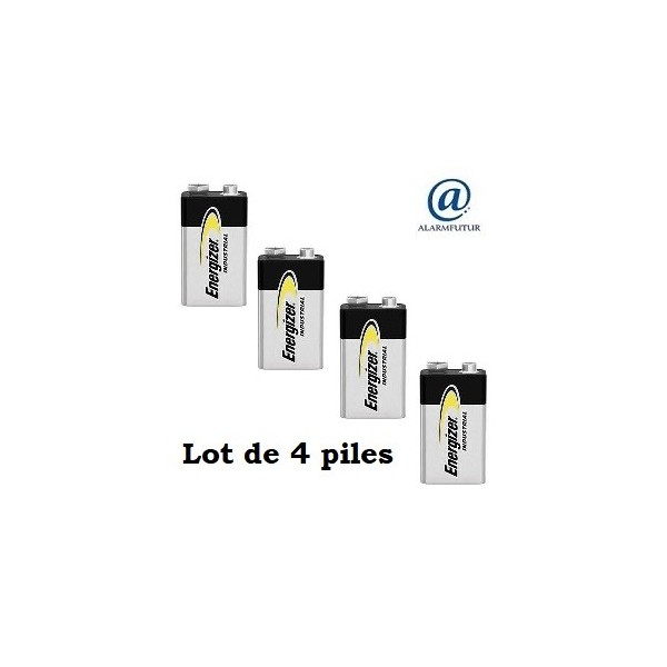 Lot de 4 piles Energizer Industrial désignation 6LR61, idéal pour les détecteurs de fumée et autres accessoires électronique.